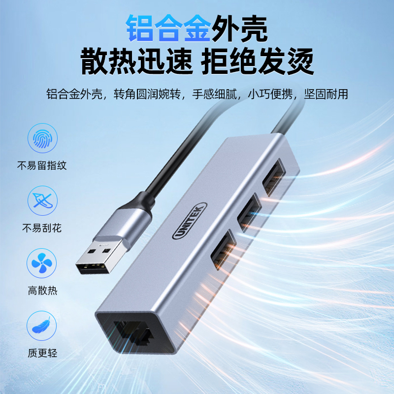- UNITEK H205A là bộ chia USB 2.0 đa năng tích hợp cổng mạng RJ45.
