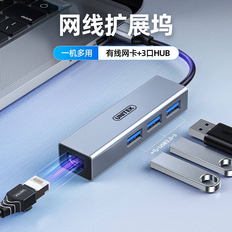 - Bộ chuyển đổi UNITEK H312B là hub mở rộng USB tiện lợi, tích hợp 4 cổng USB 3.0 và 1 cổng LAN Gigabit.