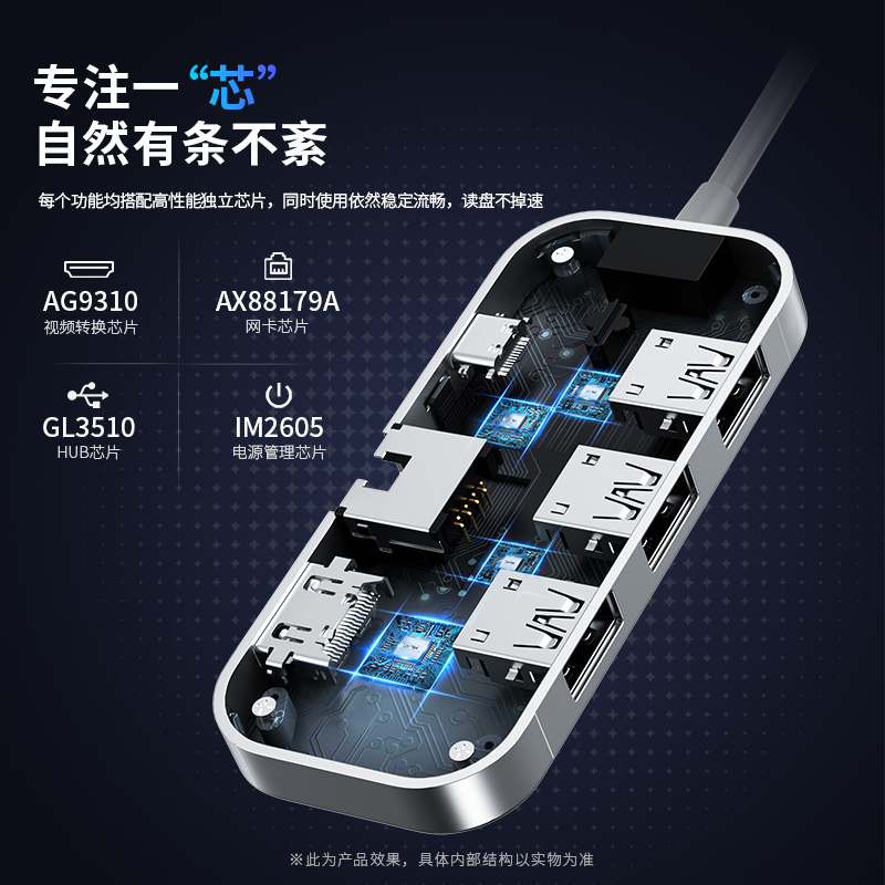 - 7 cổng trong 1: USB 3.0 x3, HDMI, RJ45 Gigabit, PD 100W, USB-C.