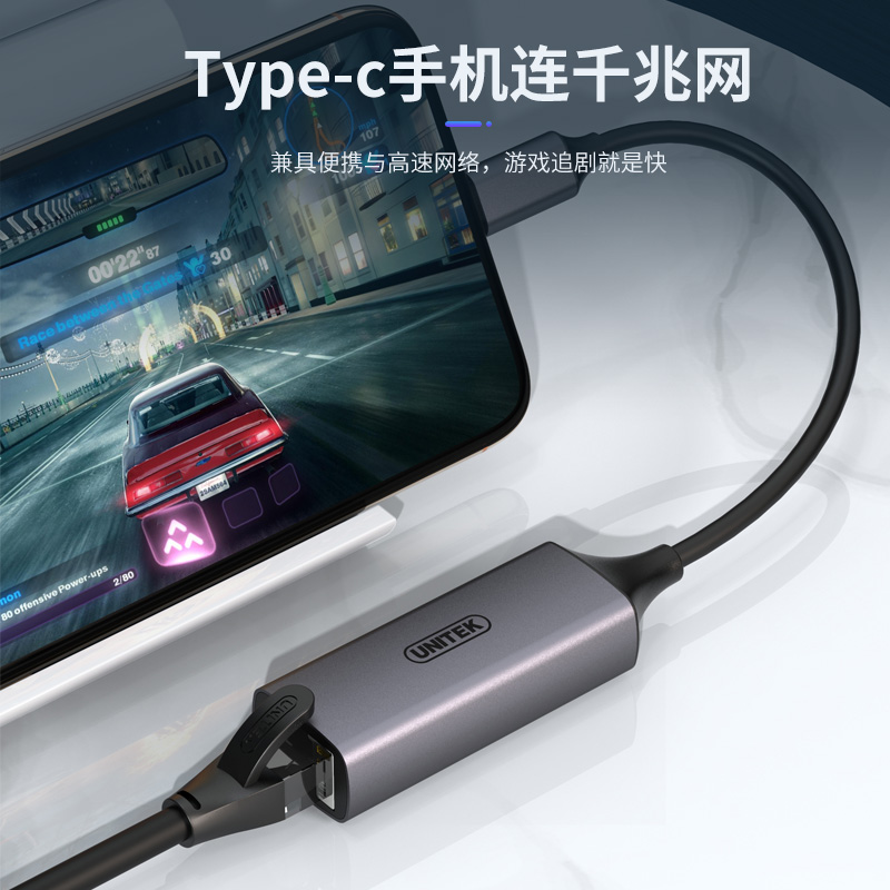 - Bộ chuyển đổi UNITEK U310A cho phép kết nối từ cổng Type-C của thiết bị đến mạng LAN qua cổng RJ45.