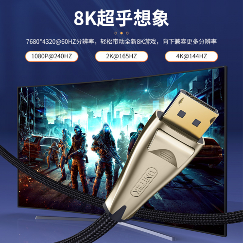 - Cáp DisplayPort UNITEK C607BNI phiên bản 1.4, hỗ trợ độ phân giải siêu nét 8K@60Hz, 4K@144Hz, 2K@165Hz và 1080p@240Hz.