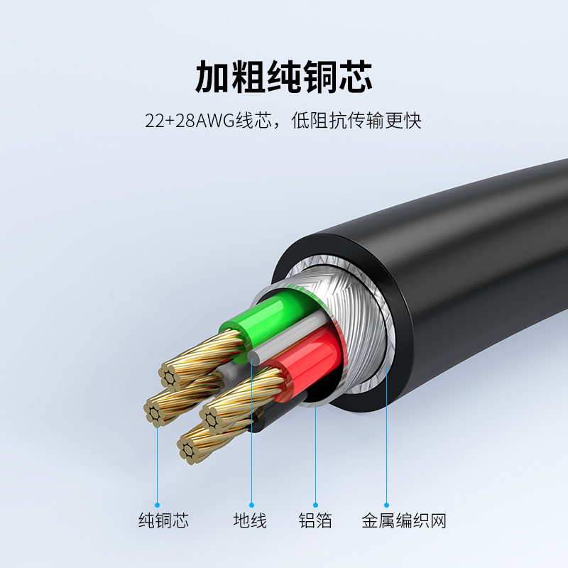 - Chất liệu: Vỏ nhôm, lõi dây đồng 22AWG, đường kính ngoài 6.0mm.