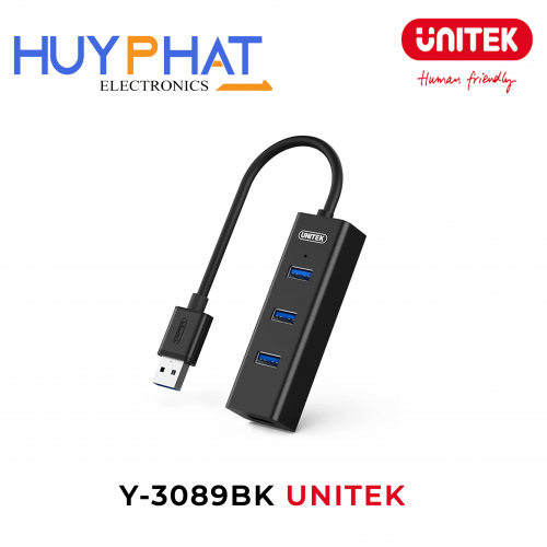 - Hub chia 4 cổng USB 3.0 UNITEK Y-3089BK giúp mở rộng kết nối USB hiệu quả cho máy tính, laptop, TV box, tablet và nhiều thiết bị khác.