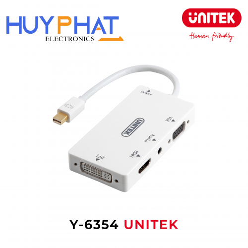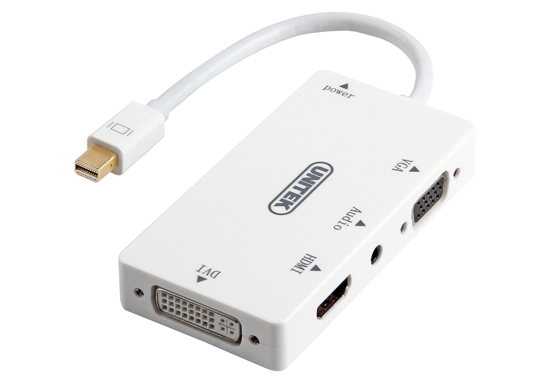- Cáp chuyển đổi Mini DisplayPort sang HDMI, DVI (24+5), VGA và Audio (Jack 3.5mm) của thương hiệu Unitek.