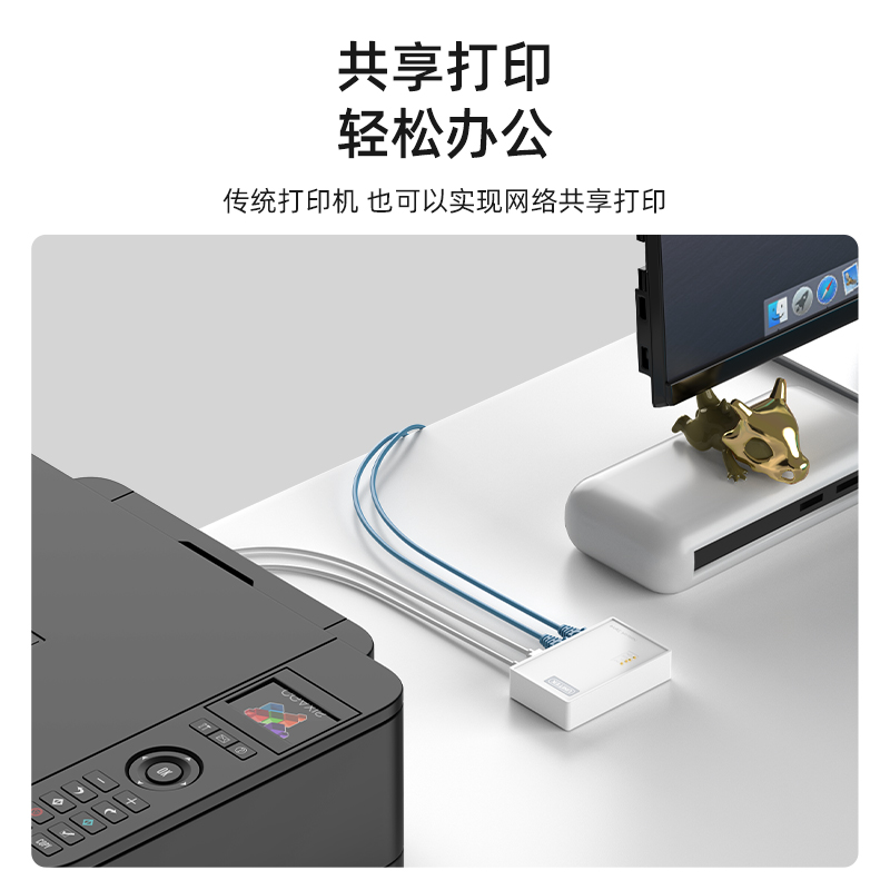 - Bộ chia sẻ máy in qua mạng UNITEK T036A cho phép nhiều thiết bị sử dụng chung máy in thông qua mạng LAN.
