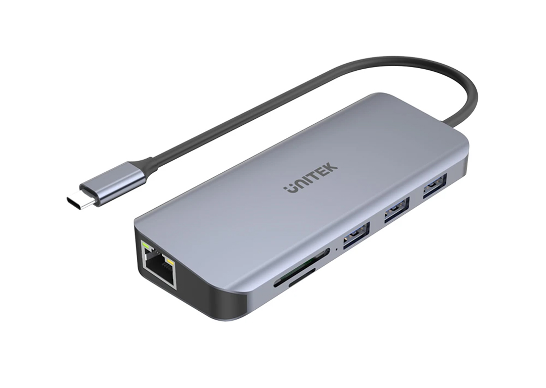 Bộ chuyển đổi 6 trong 1 Type-C -> USB-A + LAN + HDMI 4K@30Hz + VGA + CardReader + PD 100W UNITEK D1026B