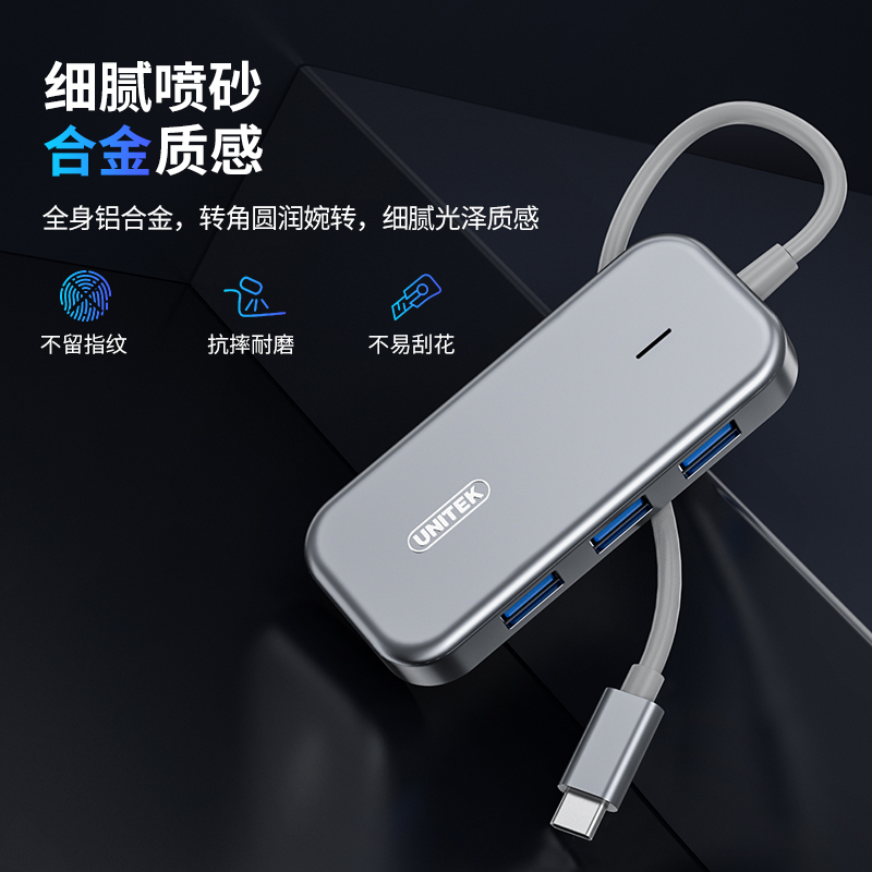Bộ chuyển đổi 7 cổng Type-C ->USB 3.0 + HDMI 4K@30Hz + LAN + PD100W UNITEK D089B