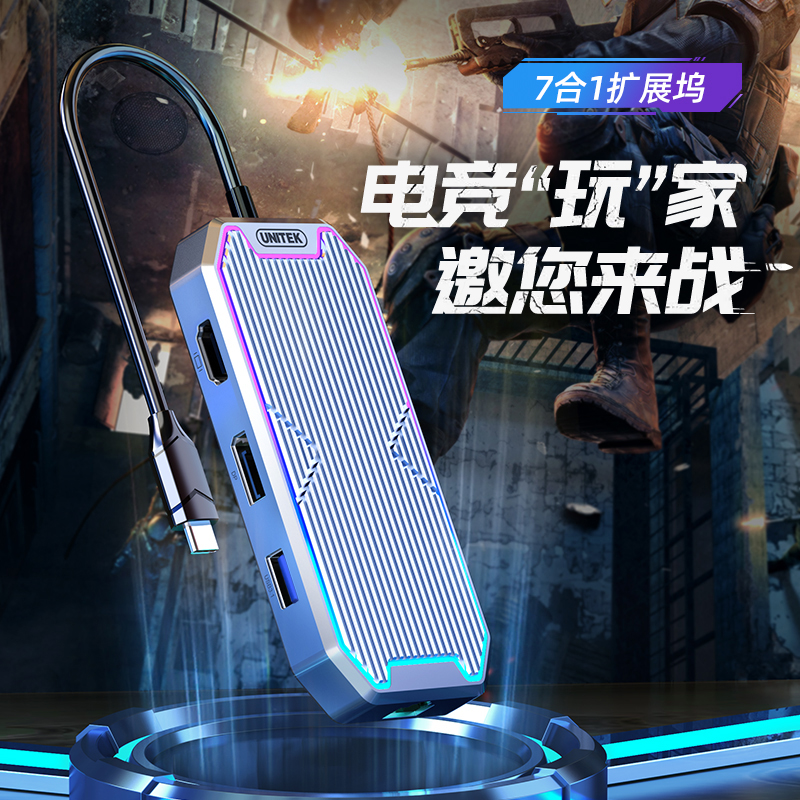 Bộ chuyển đổi 7 cổng Type-C ->USB + Type-C +HDMI 4K@60Hz + DP + RJ45 + PD100W UNITEK D029F