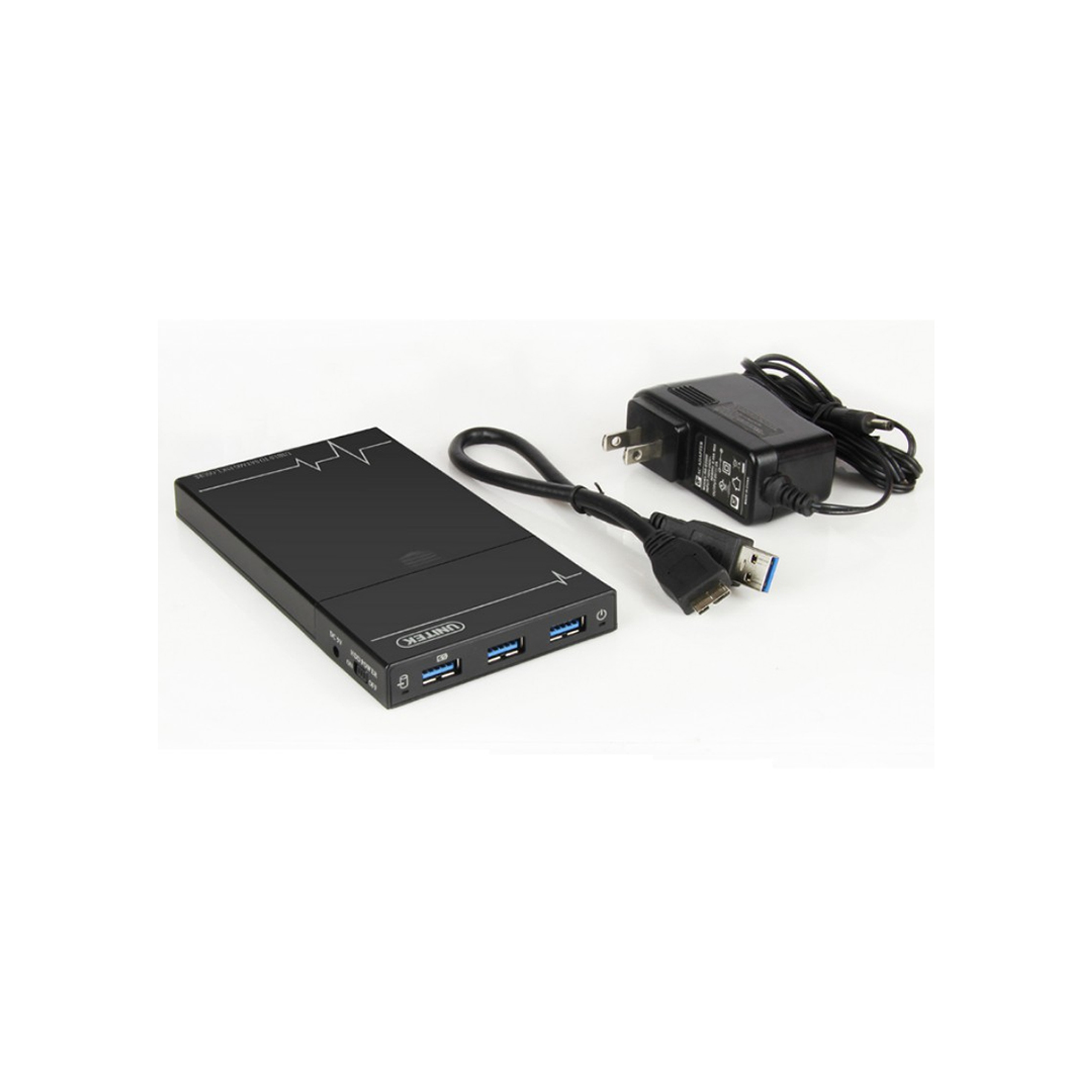 - Thiết kế 2 trong 1: Hộp đựng ổ cứng 2.5" + chia USB.