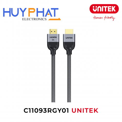 - Cáp HDMI Unitek C11093RGY01 hỗ trợ độ phân giải tối đa 8K@60Hz, mang đến trải nghiệm hình ảnh siêu sắc nét, sống động.