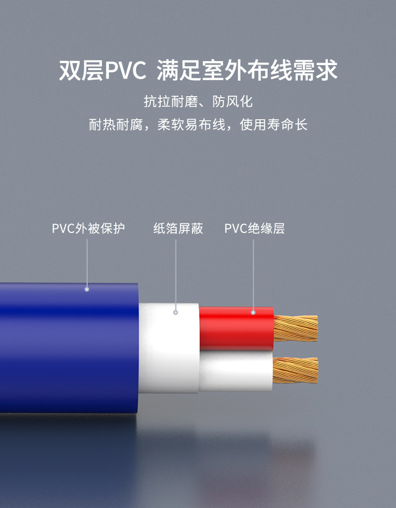 - Vỏ bọc PVC thân thiện với môi trường, độ bền cao.