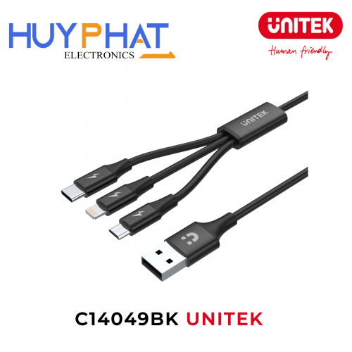 Cáp sạc đa năng 3 trong 1 USB-A sang USB-C / Micro USB / Lightning UNITEK C14049BK
