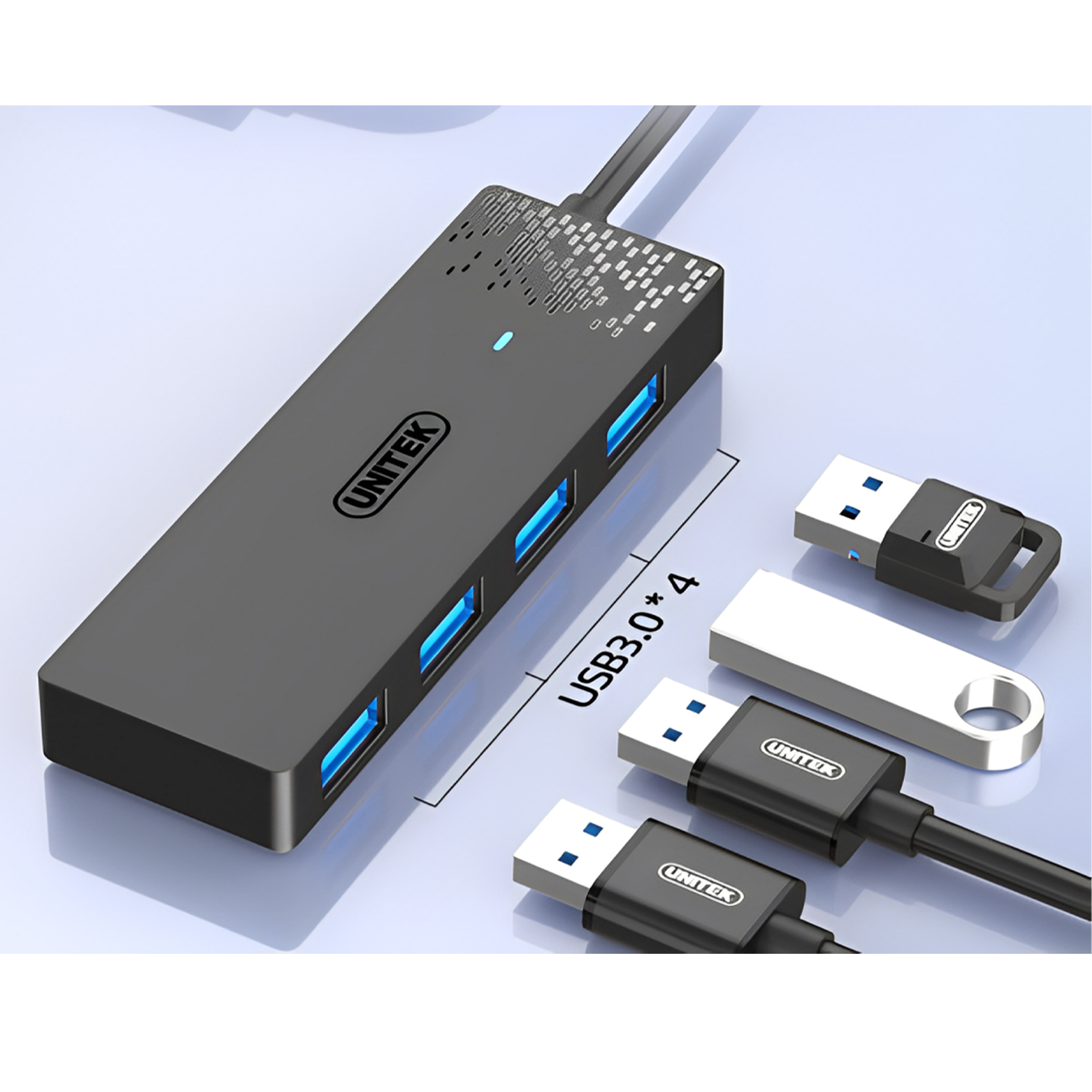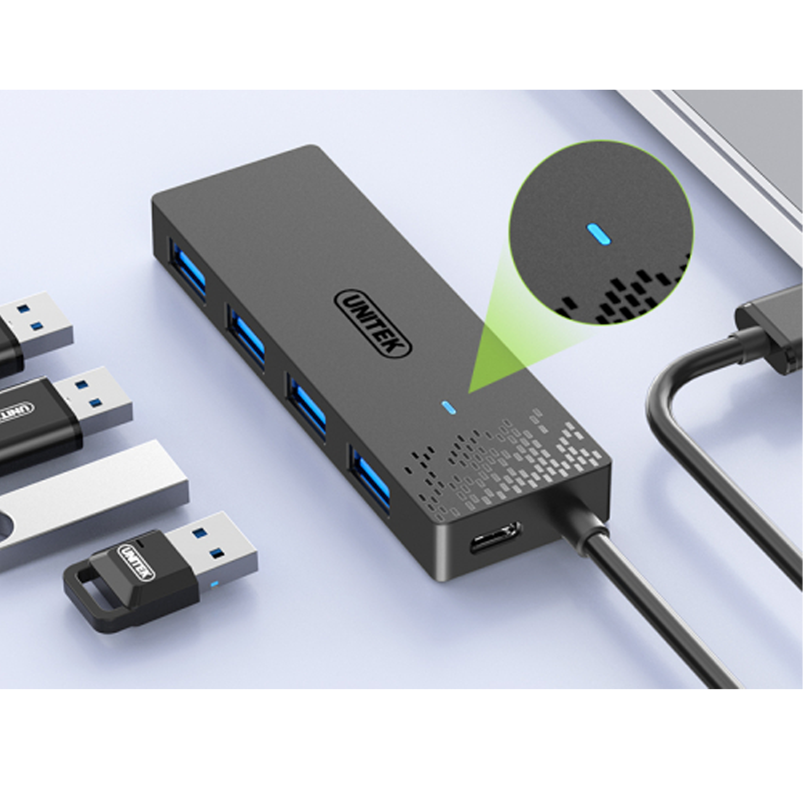 - Hub chia 4 cổng USB 3.0 UNITEK H1322A là thiết bị mở rộng kết nối tiện lợi cho máy tính, laptop, đặc biệt phù hợp môi trường văn phòng.