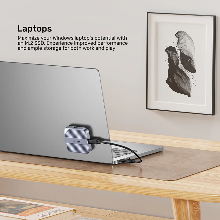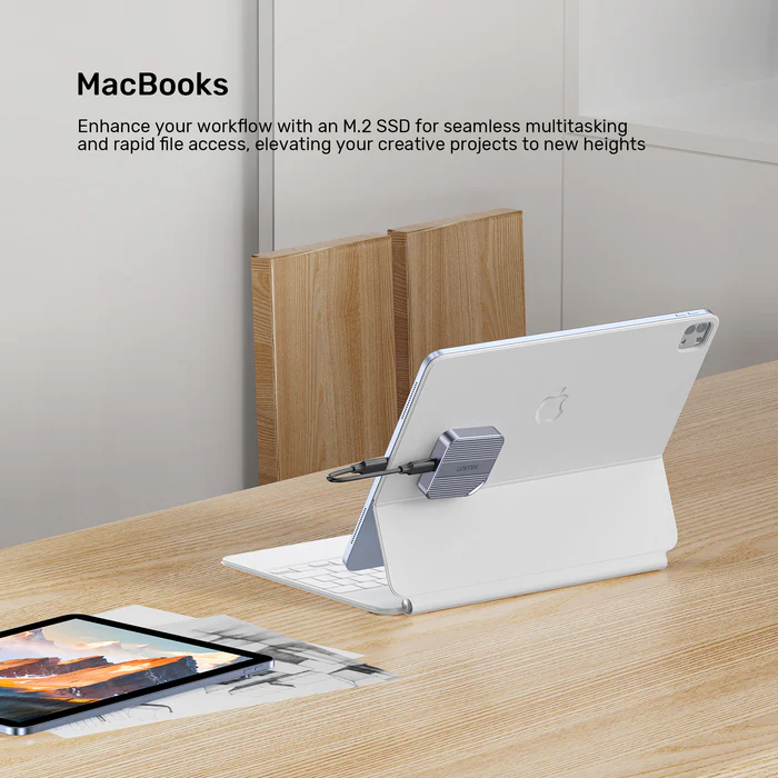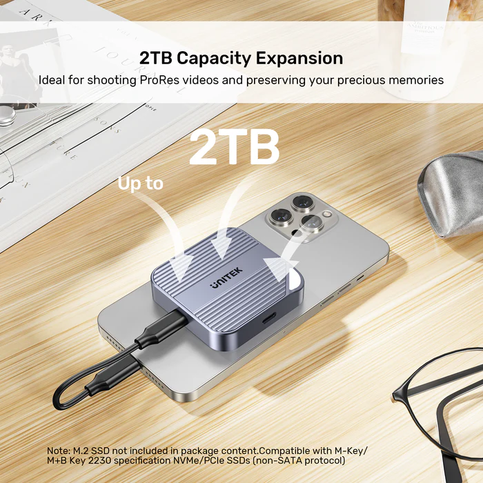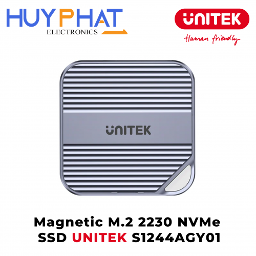 UNITEK Magnetic M.2 2230 NVMe SSD Enclosure là hộp đựng ổ SSD ngoài được thiết kế nhằm đáp ứng nhu cầu lưu trữ cao, tốc độ lớn cho người dùng chuyên nghiệp và sáng tạo nội dung. Với thiết kế vỏ nhôm có nam châm MagSafe giúp thiết bị bám chắc vào điện thoại hoặc máy tính bảng tương thích, thiết bị vừa đẹp, vừa tiện mang theo.