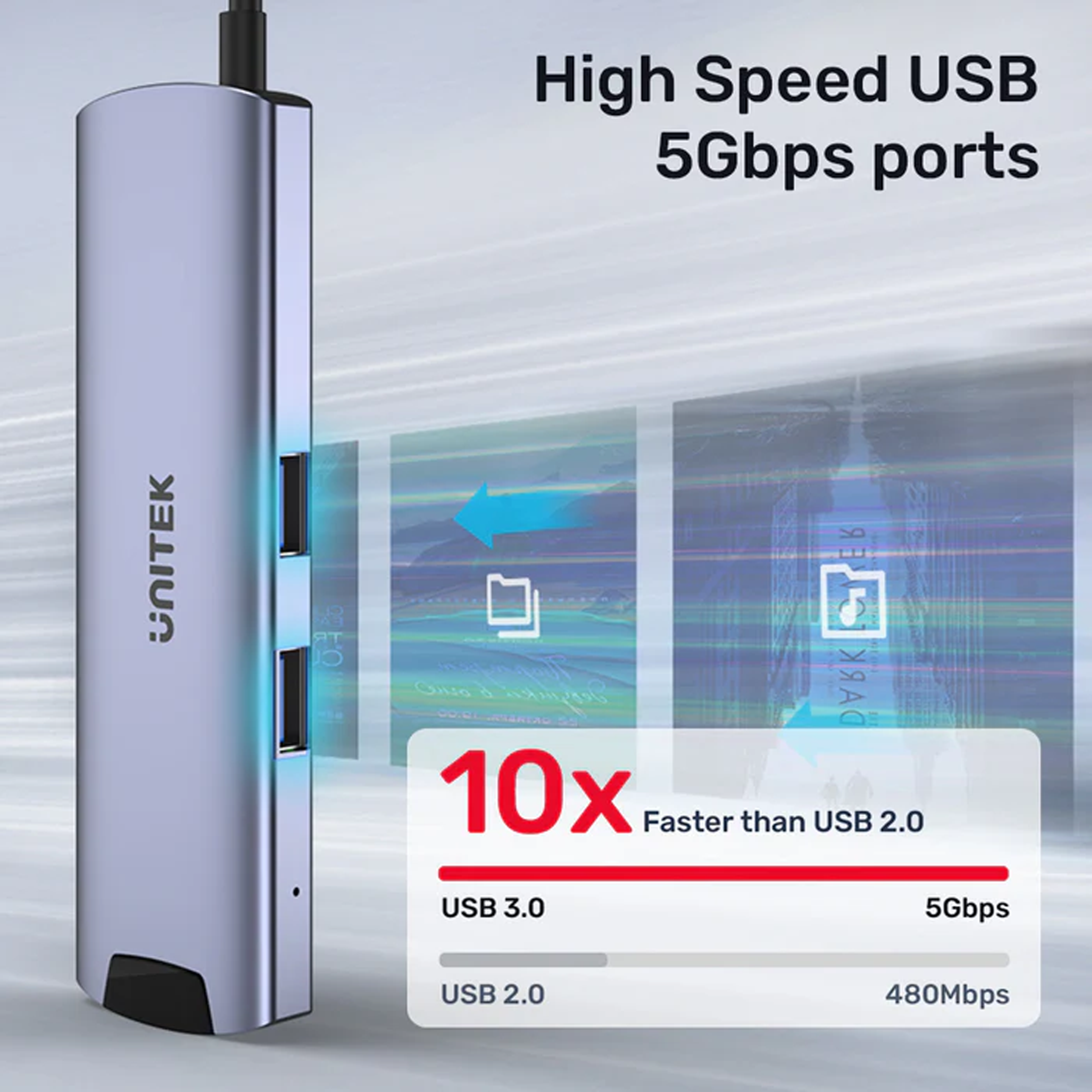Hub USB-C đa cổng UNITEK cho phép bạn tạo máy trạm mọi lúc, mọi nơi. Hub có thể kết nối máy tính xách tay USB-C của bạn với nhiều thiết bị và chiếu hình ảnh lên màn hình/máy chiếu.