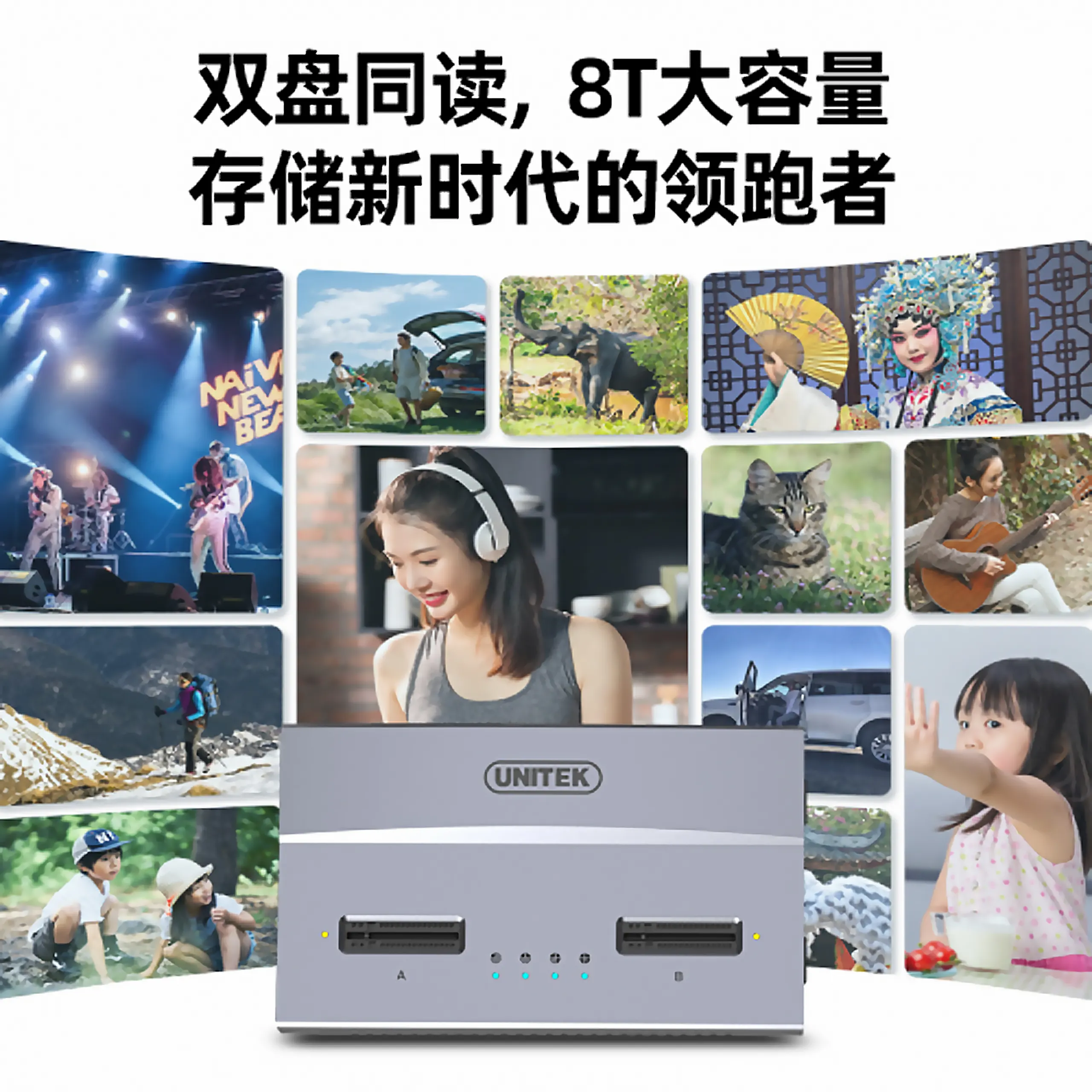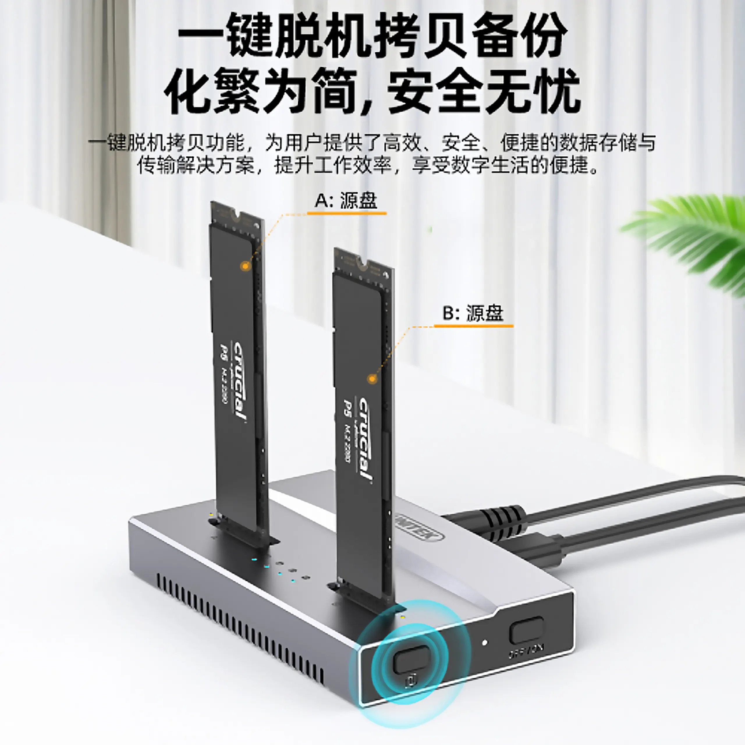 - Cơ sở sao chép đĩa kép UNITEK Superior M.2, hỗ trợ đọc đồng thời 2 đĩa SSD.