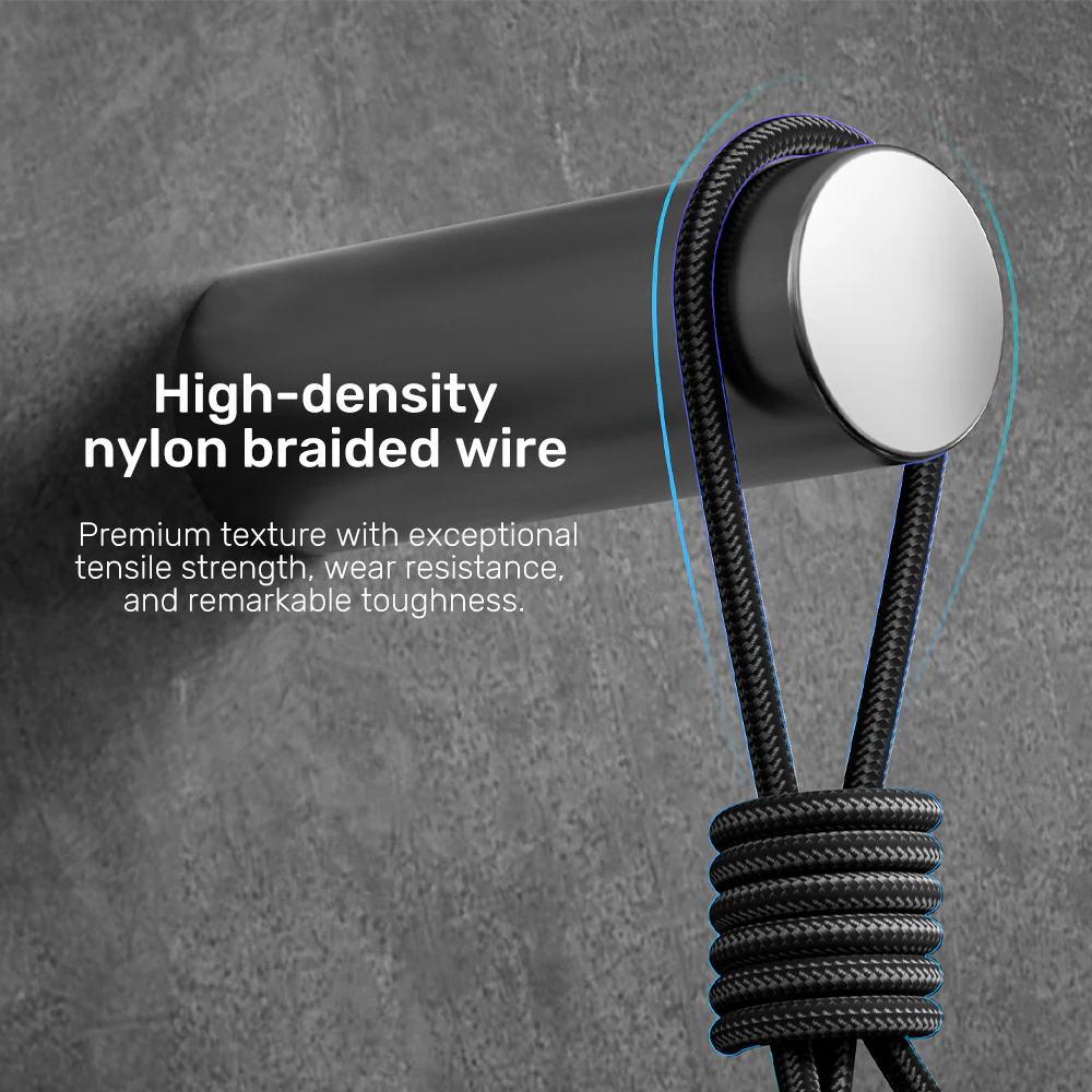 - Được chế tạo từ vật liệu bền bỉ, dây bọc nylon chống rối, đầu cắm nhôm cao cấp cho độ bền vượt trội.