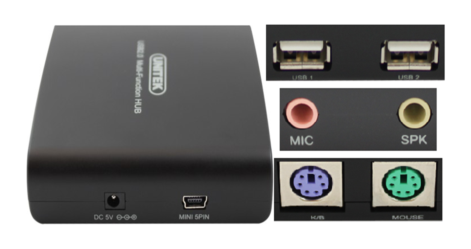 Hub chuyển đổi USB 2.0 + 2 PS2 + 2 MIC/SPK UNITEK Y-2091