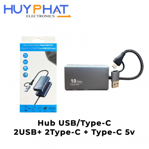 Hub USB 3.2 Gen2 4 cổng 10Gbps 5 trong 2 Cổng USB-A*2+Cổng USB-C*2+USB-C(Đầu vào 5V)