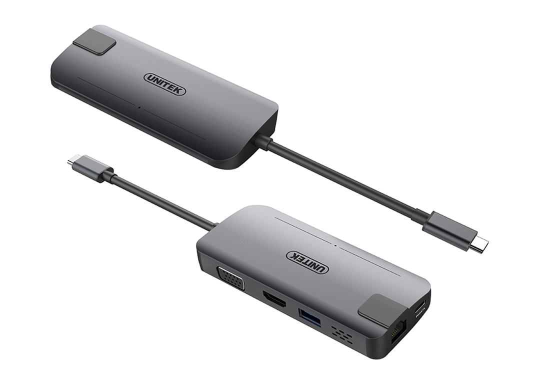 - Hub chia 4 trong 1 Type-C sang USB 3.0 + HDMI + VGA + LAN UNITEK Y-DK09016GY.